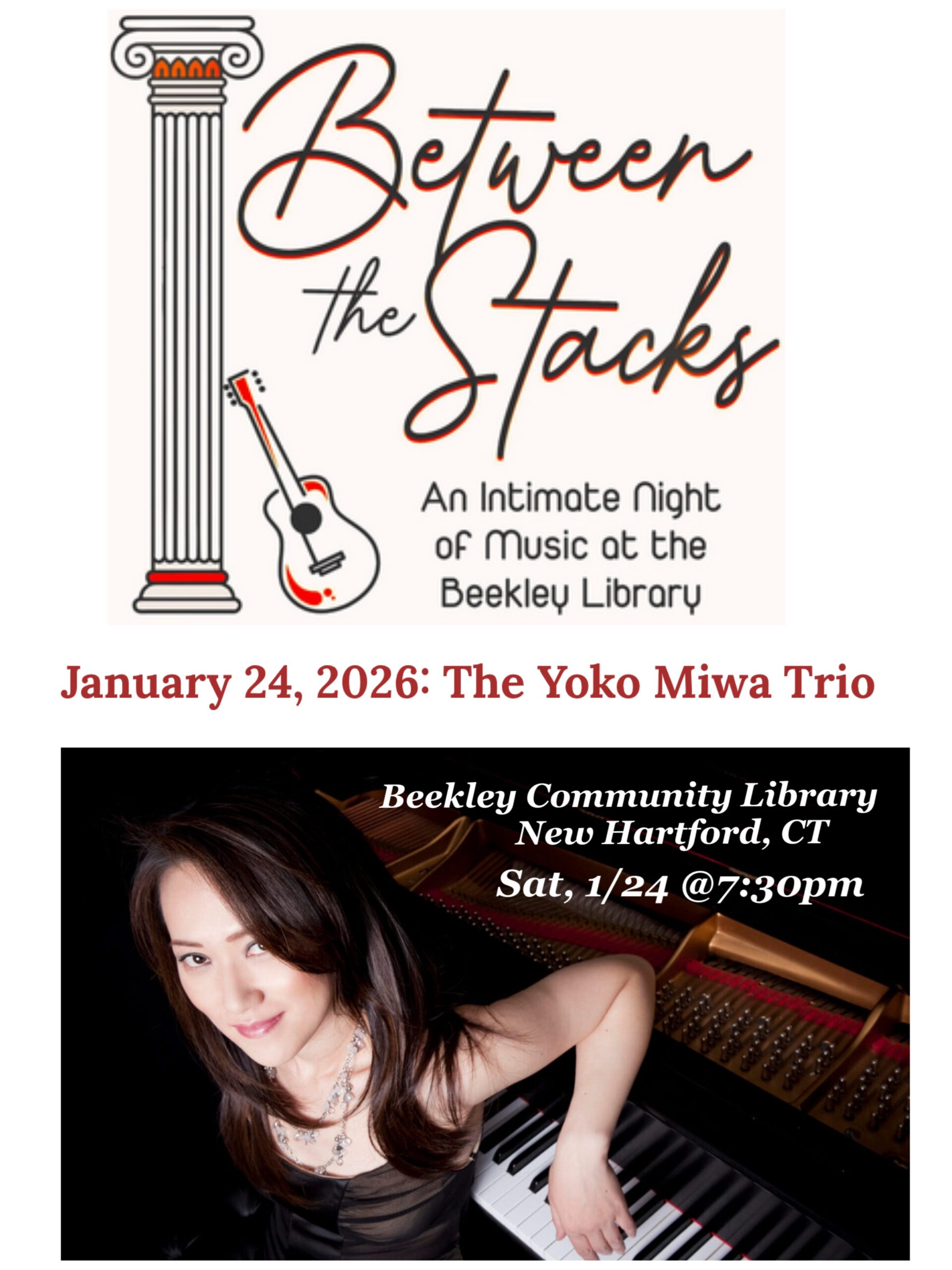 Just a reminder that The Yoko Miwa Trio performs this Saturday, January 24 as part of the Between the Stacks concert series.